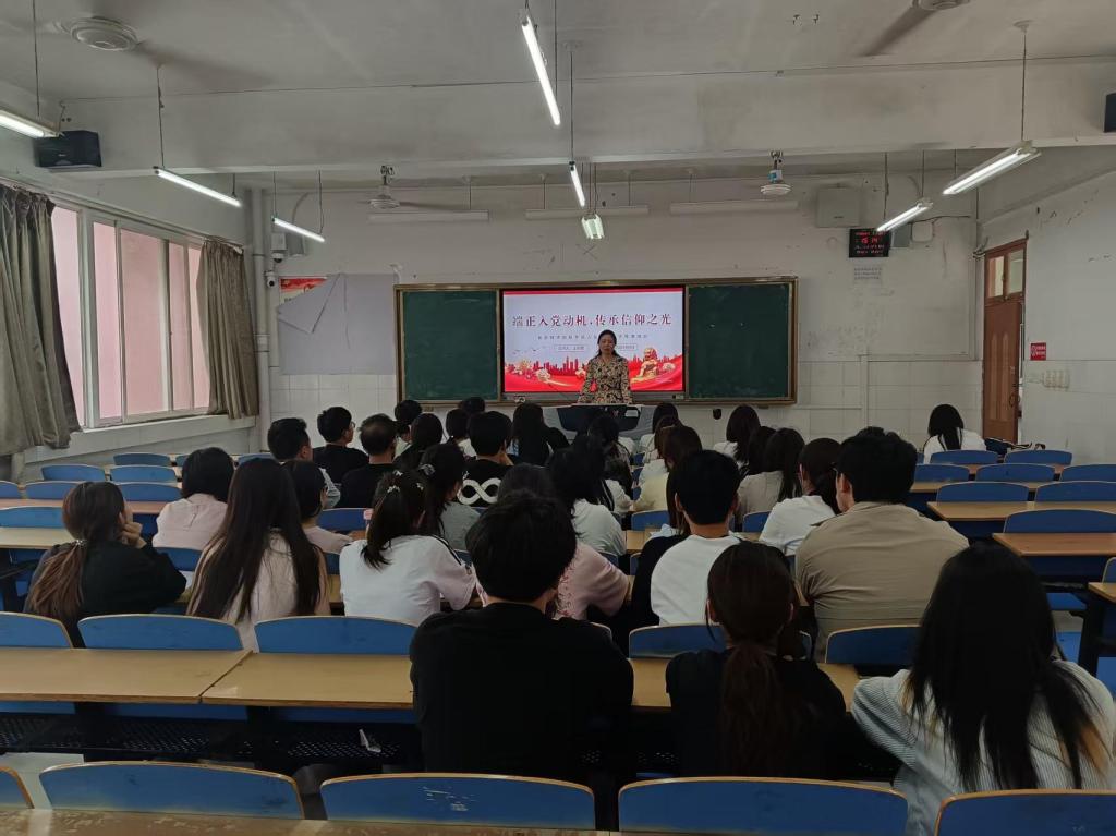 为进一步坚定入党积极分子的理想信念,提高入党积极分子思想觉悟,增强入党积极分子学习能力,发挥入党积极分子先锋模范作用。taptap点点体育(食品工程系)于5月9日举行第五十六期入党积极分子培训会,食品工程系党总支负责人王新娜以“端正入党动机,传承信仰之光”为题为全体入党积极分子讲授专题党课。