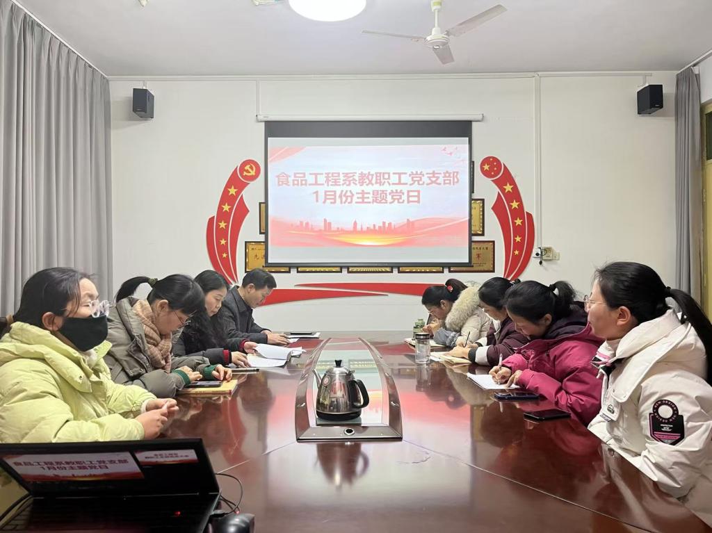 1月8日,食品工程系教工党支部在系党员活动室召开1月份主题党日活动。本次活动由食品工程系党总支负责人王新娜主持,全体党员参加活动。