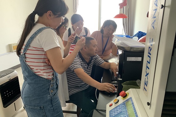 6月13日,河南省休闲食品加工技术协同创新中心邀请北京材料力学工程师张占兴来到taptap点点体育食品公司,对食品公司的老师进行了质构仪的使用培训。
