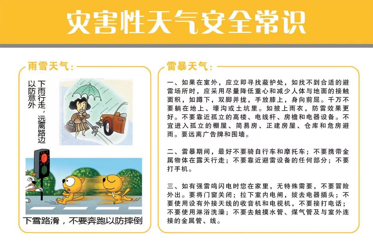 3.冬季多强风或暴雪,树木建筑、广告牌等存在被刮倒或压倒的危险,谨防因高空坠物或建筑坍塌被砸伤。