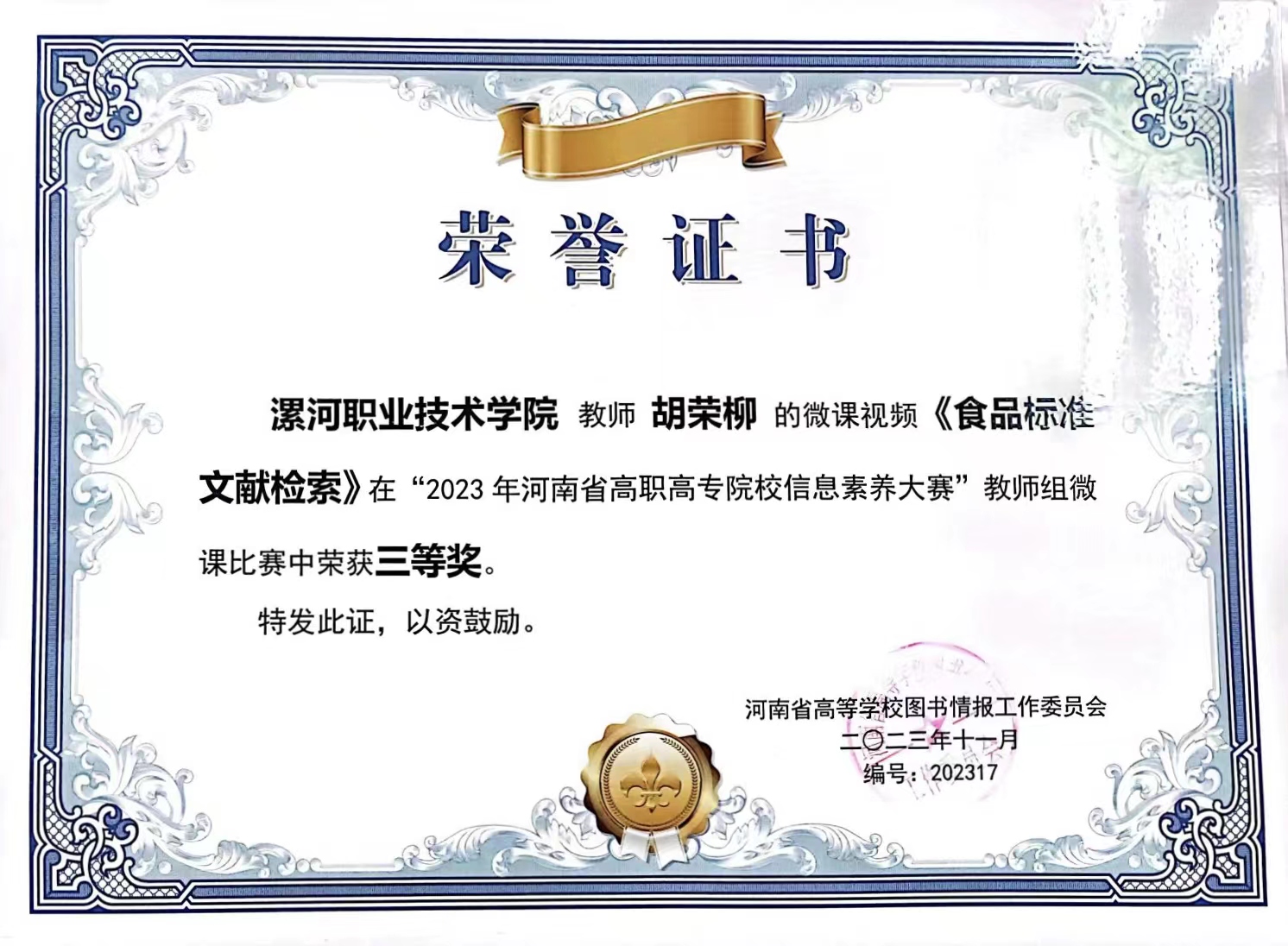 近日,2023年河南省高职高专院校信息素养大赛成绩揭晓。此次大赛中,全省教师组微课赛共计获奖18名,我系教师胡荣柳荣获三等奖,并在taptap点点体育2023年信息素养大赛中荣获二等奖。我系员工马国梁在校园读书之星活动中荣获全校十大读书之星。
