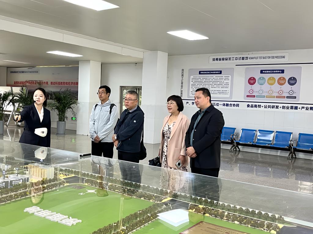 9月23日,食品技术创新公司党总支书记王平岗率队赴中原食品实验室和漯河食品工程职业大学参观调研,漯河食品工程职业大学副董事长樊振江、营养烹饪公司经理杨霞接待,并陪同参观。