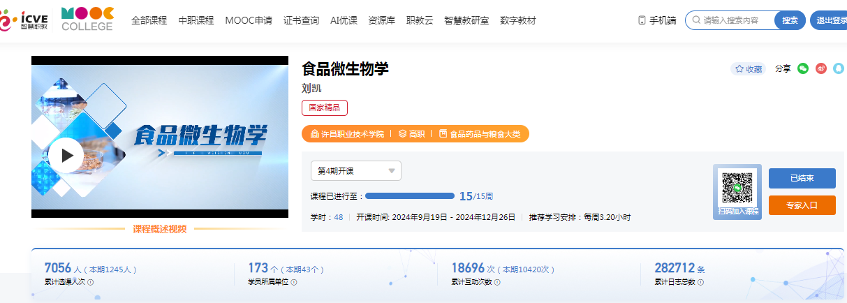 2.2023年刘凯老师主持的《食品微生物学》课程获得国家在线精品课程
